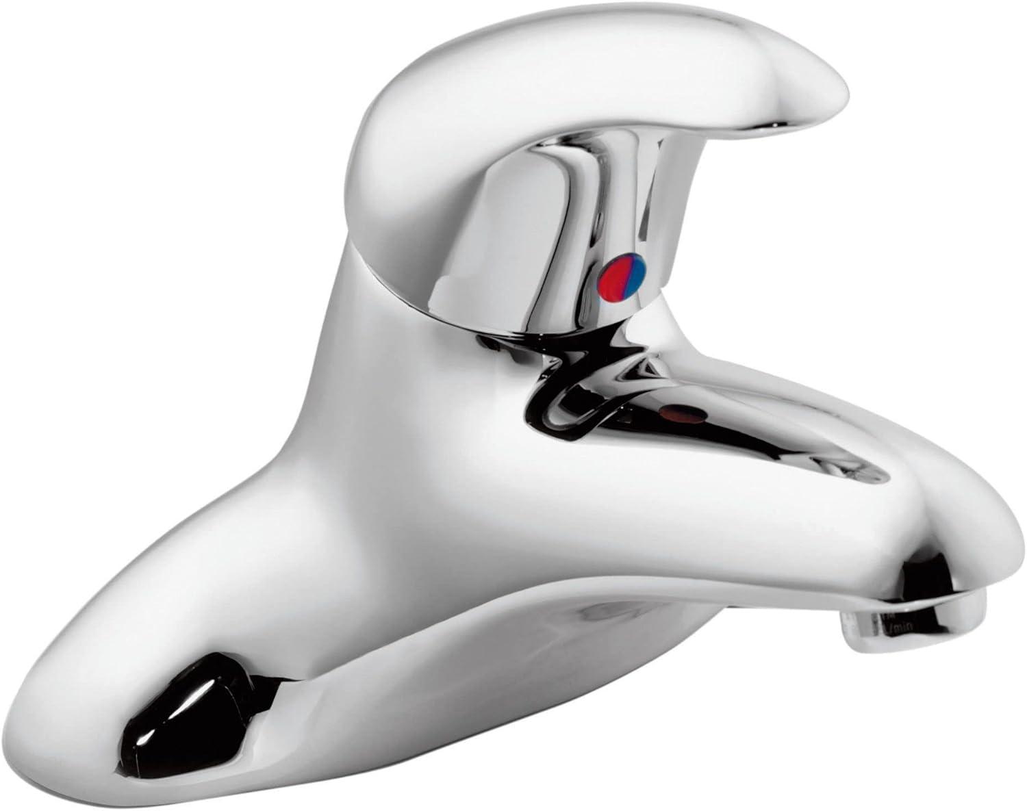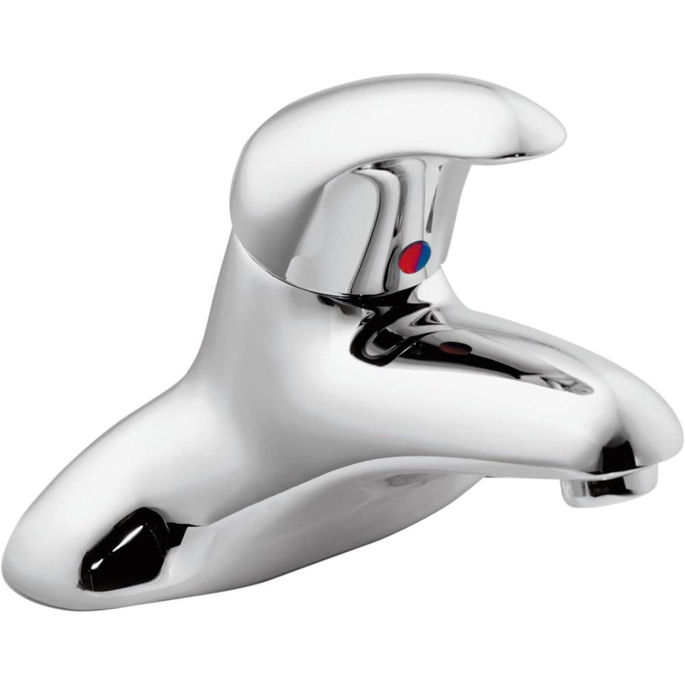 This single-handle lavatory faucet is designed for ease of use. This faucet features adjustable temperature limit stops, solid brass waterways, solid brass construction and a chrome finish for a bright, highly reflective, cool grey metallic look. This faucet is equipped with a lever handle, with temperature control through a 110 degree arc of the handle, a ceramic disc cartridge and nonmetallic/nonferrous material. The aerator flow is limited to 2.2 gpm maximum. The faucet is designed to be installed through three holes with a 1-Inch diameter, is certified to ANSI/NSF 61/9, complies with California Proposition 65 and with the Federal Safe Drinking Water Act. Moen Commercial offers a full line of faucets, electronic flush valves and showering systems built to withstand the harshest conditions in commercial and institutional buildings and construction. They're built for constant use, and occasional misuse. They're built for the real world.