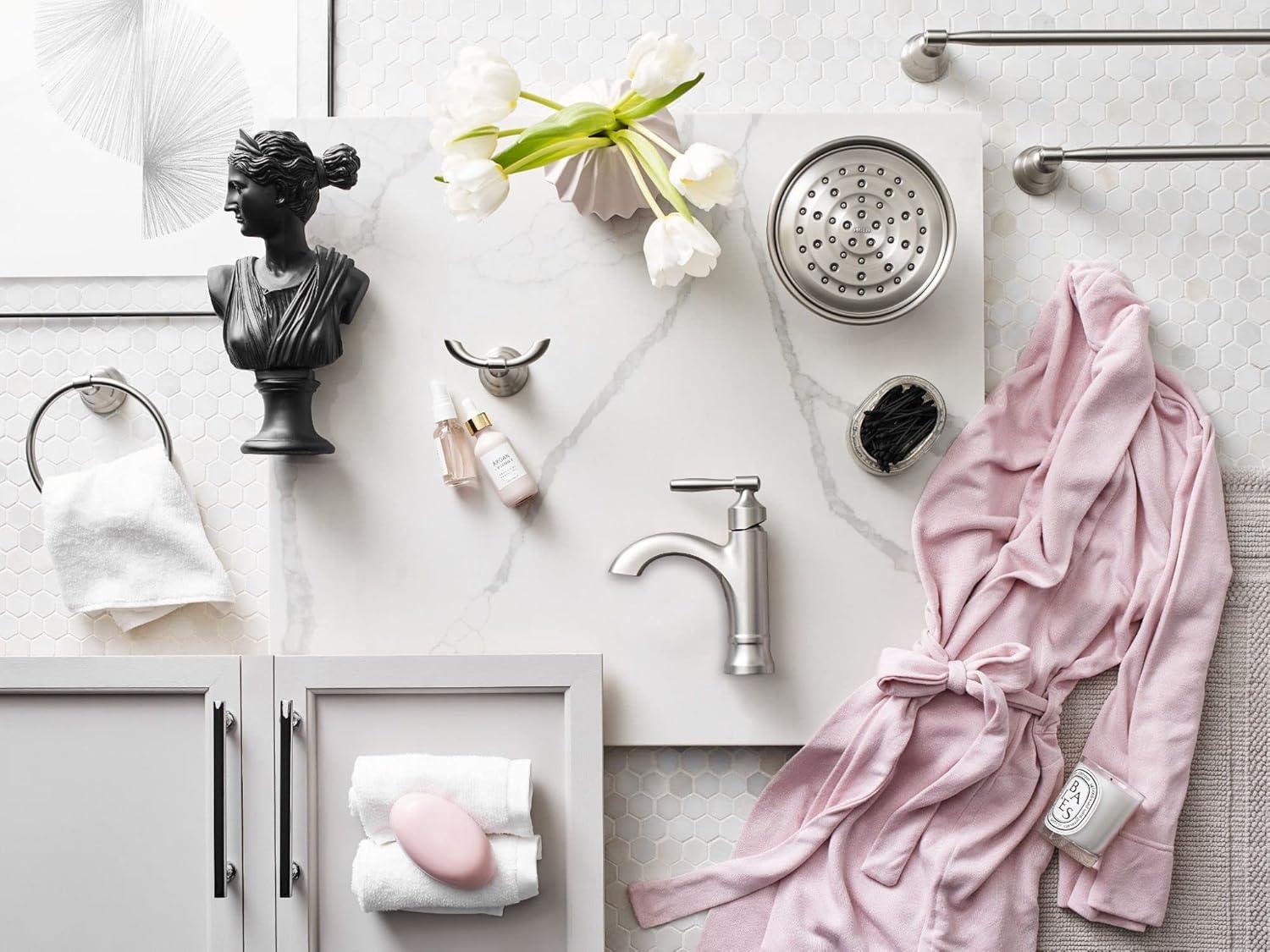 Inspired by timeless classical forms with a contemporary flair, the Halle collection is a stunning centerpiece for any bathroom. Its linear elements paired with crisp details offer an elegant look that will never go out of style.Available in Moen's exclusive Spot Resist Brushed Nickel finish, which resists fingerprints and water spots to maintain the brilliance of the fixture.