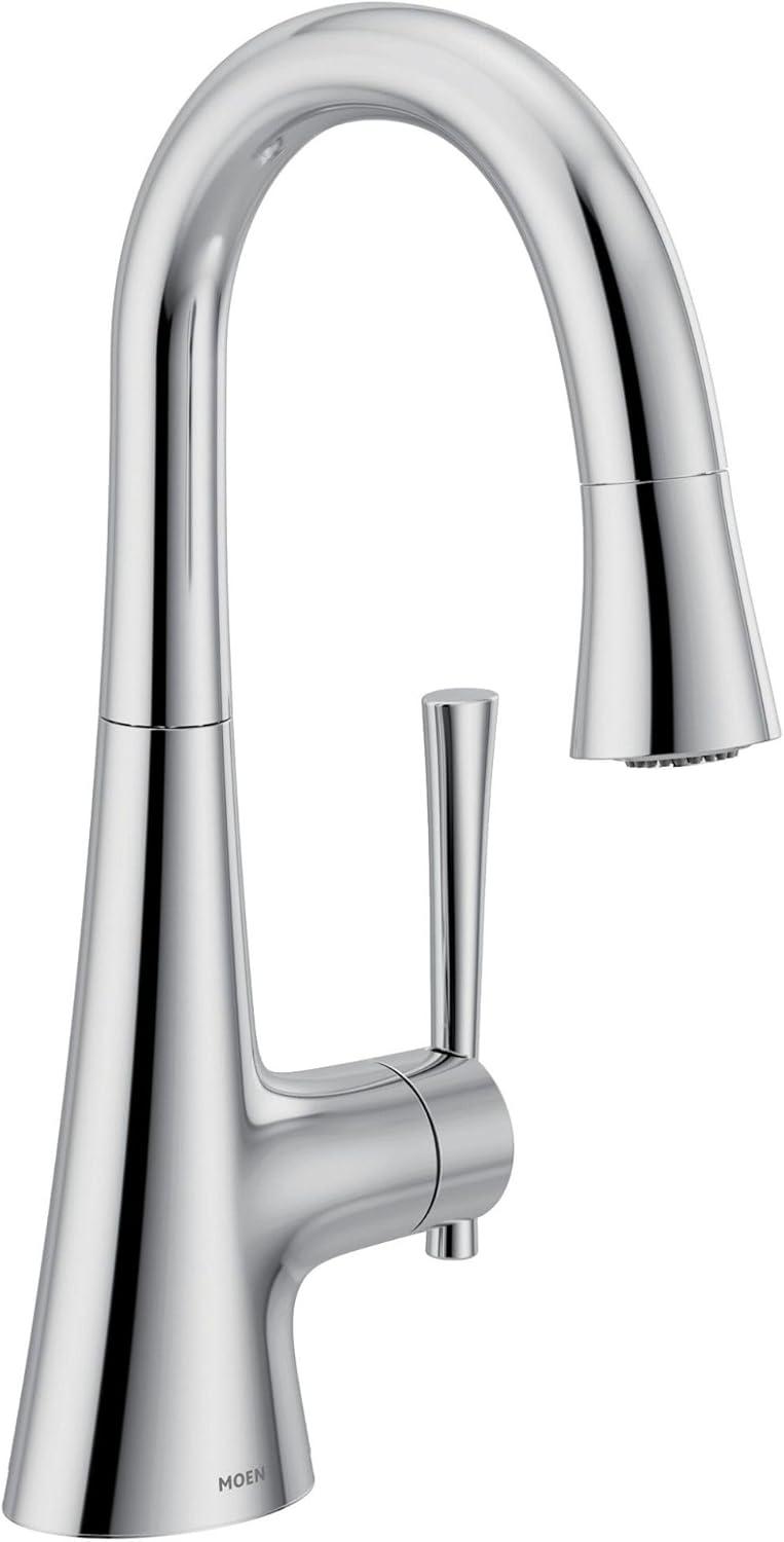 Moen Kurv Collection Chrome One-Handle Pulldown Bar Faucet with Power Clean Featuring Reflex, 6126(Chrome)