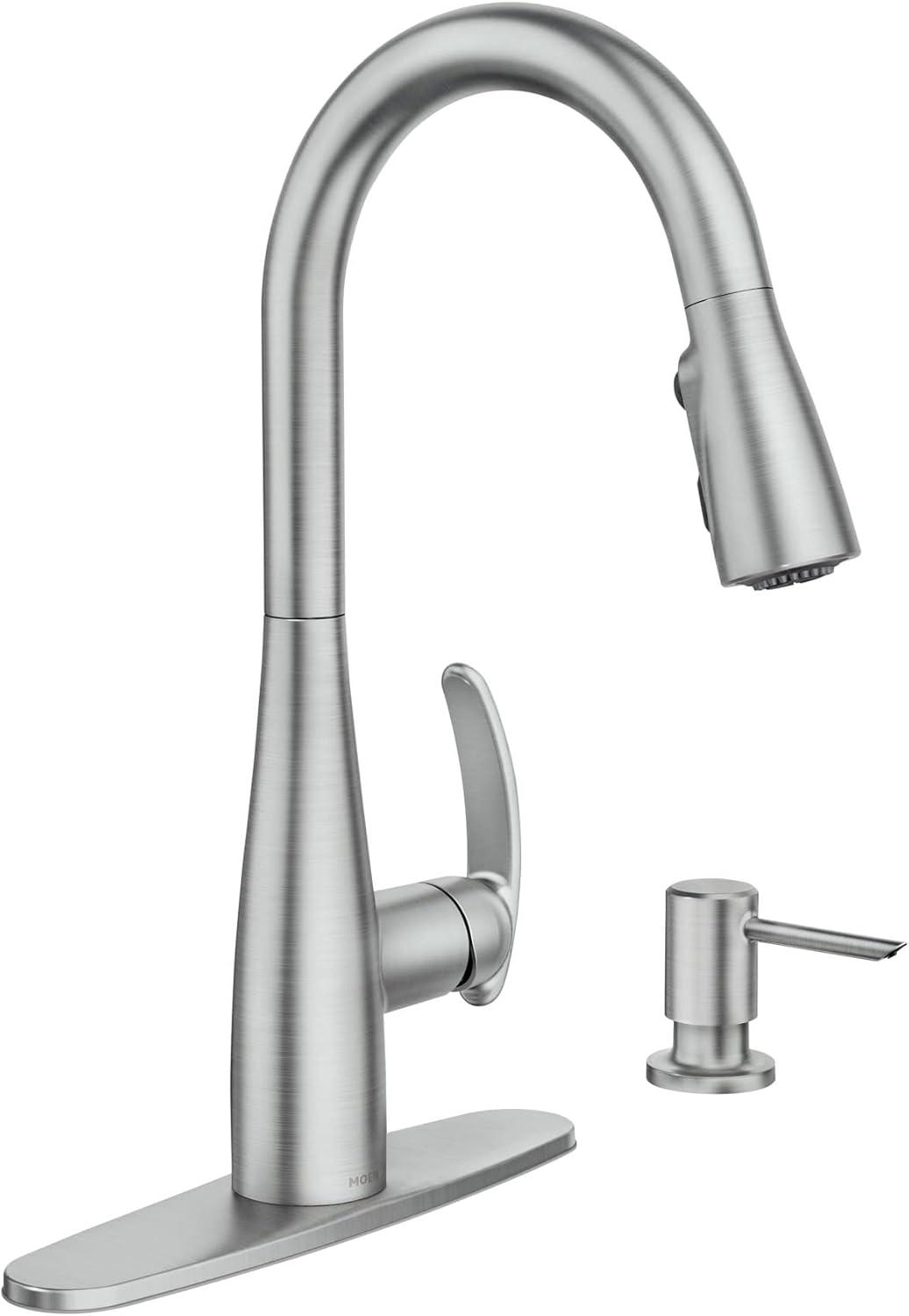 Moen Reyes Chrome One-Handle High Arc Pulldown Kitchen Faucet with Soap Dispenser and Power Boost, 87932(Matte Black)