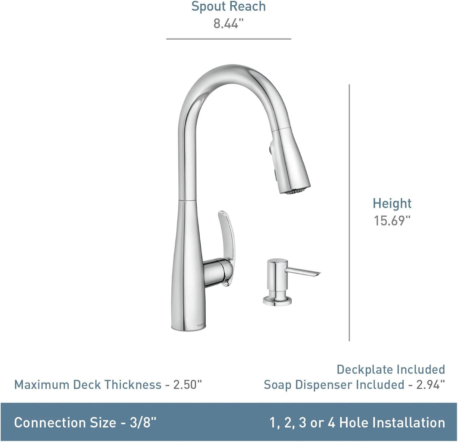 imageMoen Reyes Chrome OneHandle High Arc Pulldown Kitchen Faucet with Soap Dispenser and Power Boost 87932Matte Black