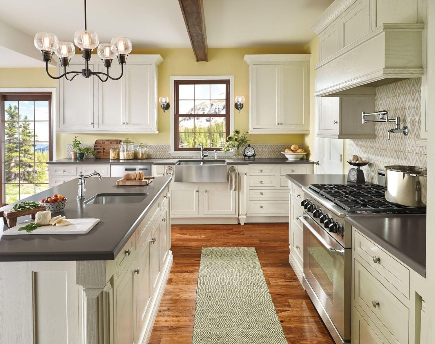 Weymouth's gracious design details and distinctive Victorian finishing touches present a sense of uncommon luxury for today's traditional kitchens. Signature styling elements include a decorative top finial and a refined shepherd's spout. Distinctive accents include porcelain inlays that feature Euro-influenced decorative script and signature styling elements. Features a clean single hole installation.
