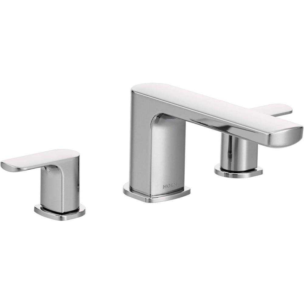 Moen T935 Rizon Two-Handle Deck Mount Modern Roman Tub Faucet Trim, Valve Required, Chrome(Chrome)
