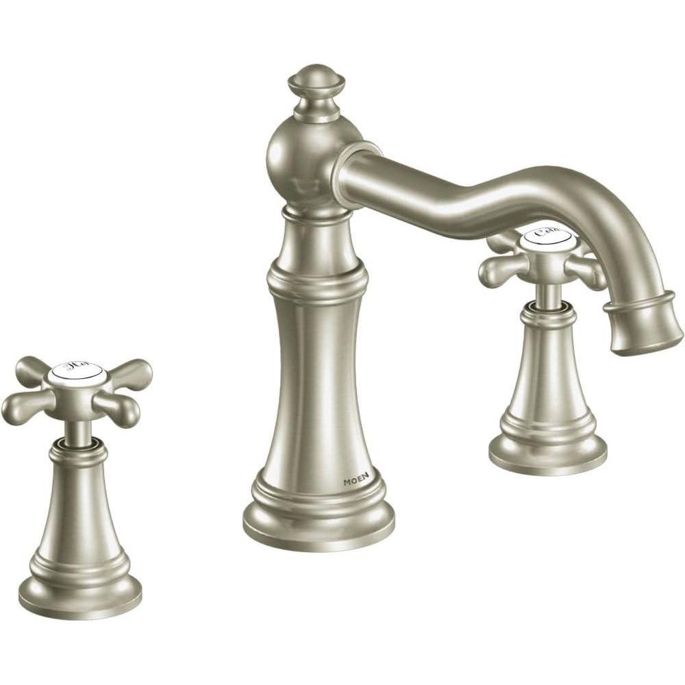 Moen TS22101BL Weymouth Two-Handle Roman Tub Faucet with Cross Handles Trim Kit, Valve Required, Trim Only, Matte Black(Brushed Nickel)
