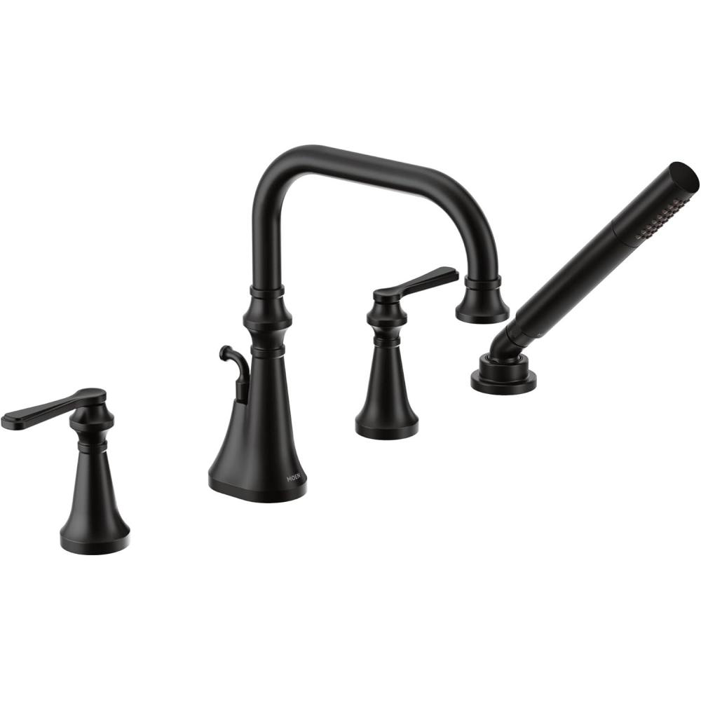 Moen TS44504BG Colinet Two Handle Deck-Mount Roman Tub Faucet Trim with Lever Handles and Handshower, Valve Required, Brushed Gold(Matte Black)