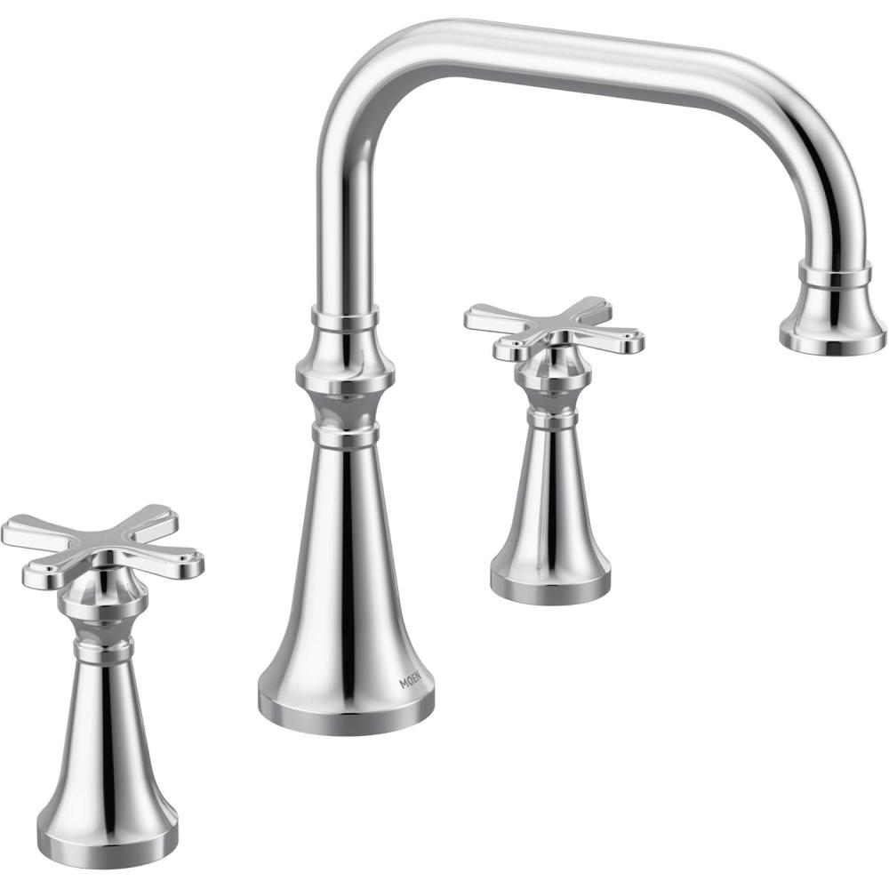 Moen TS44505BG Colinet Two Handle Arc Deck-Mount Roman Tub Faucet Trim with Cross Handles, Valve Required, Brushed Gold(Chrome)